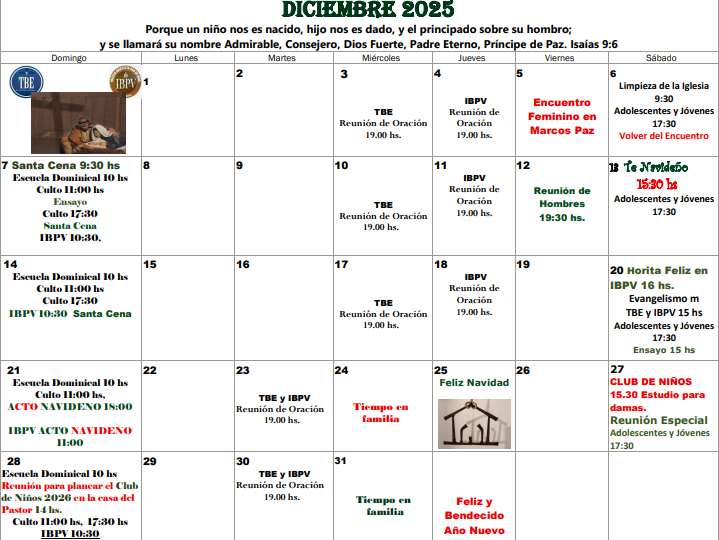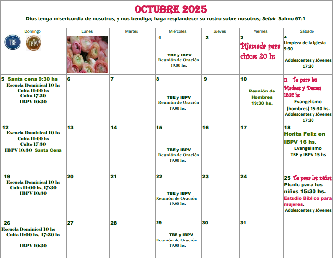 - TBE y IBPV Reunión de Oración 19.00 hs.